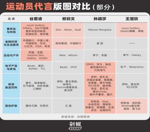 在国内这片迅速发展但又草莽生长的体育经土壤中,我们不能评判一二三上链接就是不高级,也无法按照国外成熟的商业逻辑要求国内复杂的体育明星环境。不同的运动员辐射向不同的消费群体,能拿下顶奢是一种能力,能带货同样是一种能力。