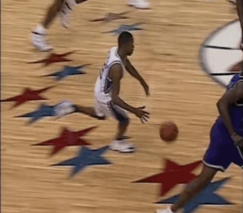 湖人球员尼克-范埃克塞尔在采访中表示,艾弗森有他见过最棒的体前变向动作。这一动作日后晃过了无数防守者,而那一球,正是它在NBA的首次惊艳登场。