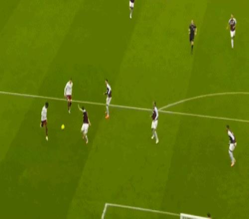 第10分钟,大马丁大脚长传,苏维门迪头球被断,麦金送出直塞,沃特金斯禁区内变向过人,随后单刀抽射,拉亚飞身将球扑出,阿森纳逃过一劫。