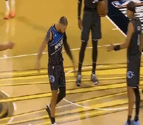 扛着魔术狂奔三节的萨格斯,末节突然捂起了大腿,最后提前离场时魔术落后10分,上半场砍下25分下半场仅得1分。