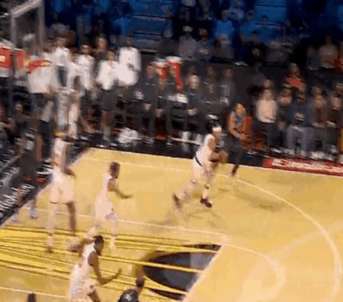 名场面,大头连续运球虚晃,布莱克倒地,大头一个后摇后撤步3分拔进