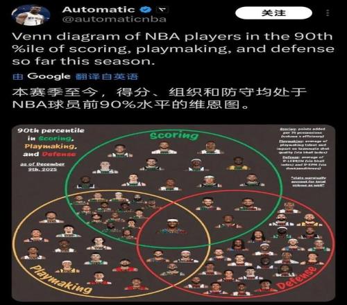 一项数据,唐斯是在得分、防守均处于NBA球员前90%中三人中的一人