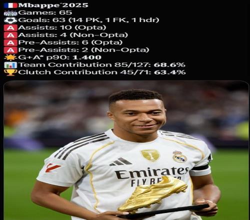 2025年姆巴佩已打进63球,距巅峰C罗仅6球