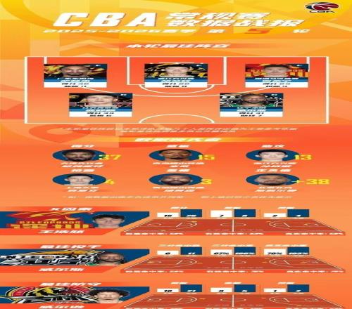 CBA第5轮最佳阵容:庞峥麟34+6创纪录领衔萨林杰胡金秋入选