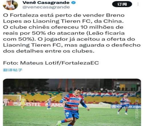 李金羽有眼光!中超又来一位大杀器,巴西权威记者爆料,29岁的巴甲左边锋布雷诺-洛佩斯即将加盟中超升班马辽宁铁人,引援花费在150万欧元左右。我只说3个点你就知道,新赛季他很可能是中超又一位媲美克雷桑和米特里策的超级外援!