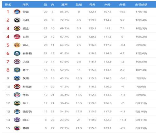 今日比赛后快船、爵士、独行侠排名互换,其他西部球队排名不变。