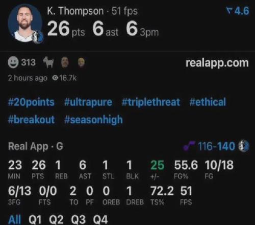 汤普森里程碑一战于独行侠144-122大胜爵士比赛,此役他投篮18中10,其中三分13中6独揽26分外加6助。